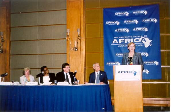(l to r) Janice Bay (Deputy Assistant Secretary, International Finance & Development, U.S. Dept. of State), Hon. Jayen Cuttaree (Minister of Industry and International Trade, Republic of Mauritius), Ken Evans (Vice President, sub-Saharan Africa, ExxonMobil Exploration Company), James Harmon, Thelma Askey (Director, U.S. Trade & Development Agency)