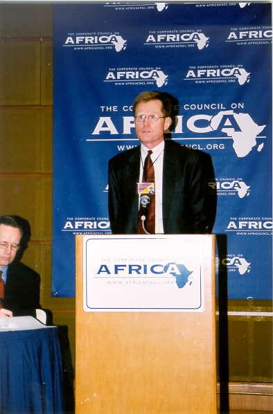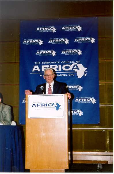 (l to r) Congressman Jim Kolbe (Chairman, House Subcommittee on Foreign Operations, Export Financing and Related Programs), H.E. Festus Mogae (President of the Republic of Botswana), James Harmon (Chairman of CCA)