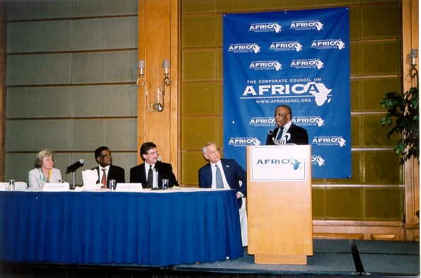 (l to r) Congressman Jim Kolbe (Chairman, House Subcommittee on Foreign Operations, Export Financing and Related Programs), H.E. Festus Mogae (President of the Republic of Botswana), James Harmon (Chairman of CCA)