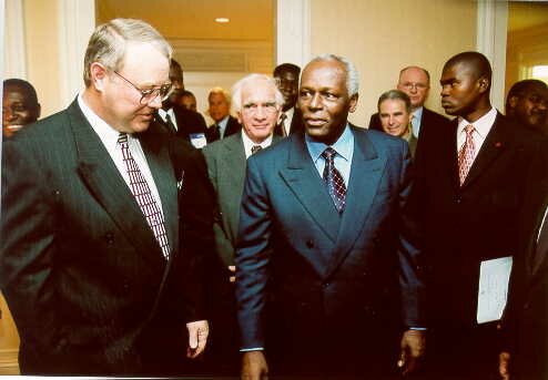 (l to r) Walter Kansteiner (Assistant Secretary of State for African Affairs, U.S. Department of State), President dos Santos