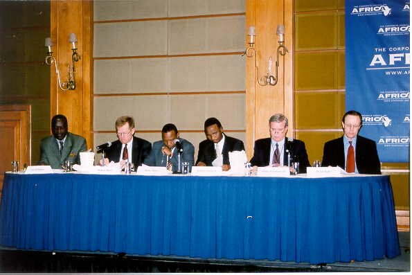 (l to r) Congressman Jim Kolbe (Chairman, House Subcommittee on Foreign Operations, Export Financing and Related Programs), H.E. Festus Mogae (President of the Republic of Botswana), James Harmon (Chairman of CCA)