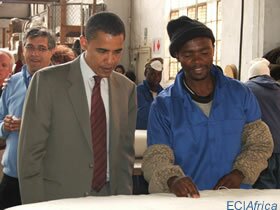 President Barack Obama, shown here during his 2006 visit to a CCA/SAIBL-supported company in South Africa